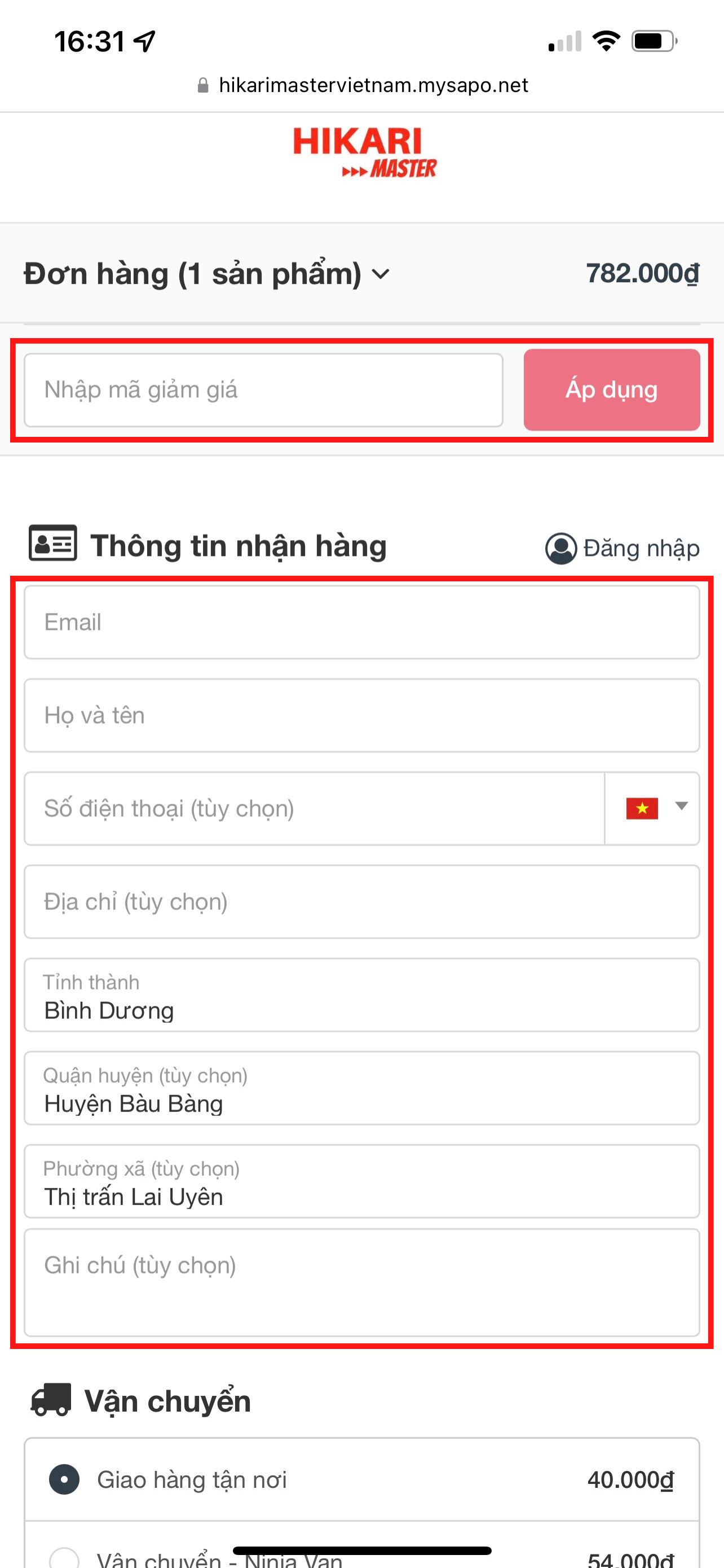 - Khách hàng nhập đầy đủ các thông tin về tên, địa chỉ, số điện thoại để hoàn tất thủ tục đặt mua hàng; kèm theo đó là voucher giảm giá của hãng trên web để nhận được ưu đãi