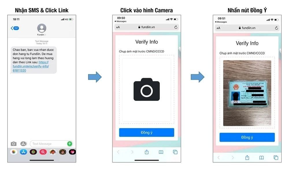 - Nhận SMS từ Fundiin, nhấn vào Link trong SMS và tiến hành chụp CMT/CCCD để tạo tài khoản.
