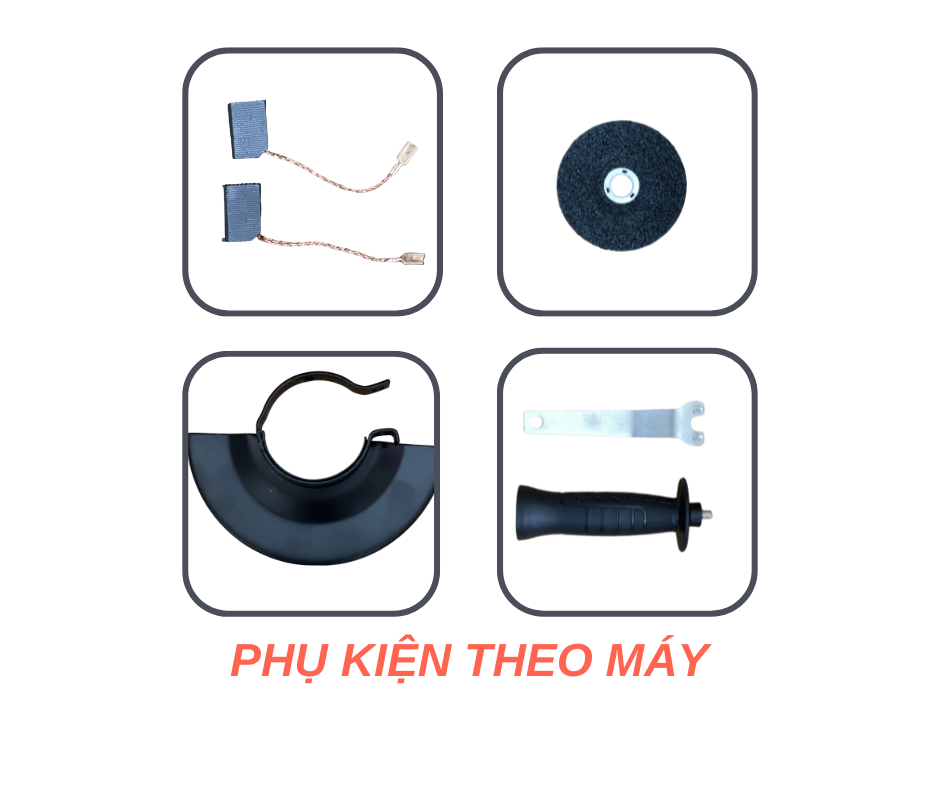 Phụ kiện: Đá mài, ốp bảo vệ, tay cầm, chổi than và cờ lê
